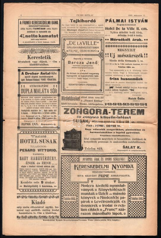 1909 Fiumei Estilap II. évf. 57. sz., 1909. márc. 12., szerk.: Dr. Brá... https://www.darabanth.com/hu/448-Gyorsarveres/448.0/Mutargy-papirregiseg-egyeb/Nyomtatvanyok~2000005/1909-Fiumei-Estilap-II-evf-57-sz-1909-marc-12-szerk-Dr-Brajjer-Lajos-nehany-apro-~II2975335
