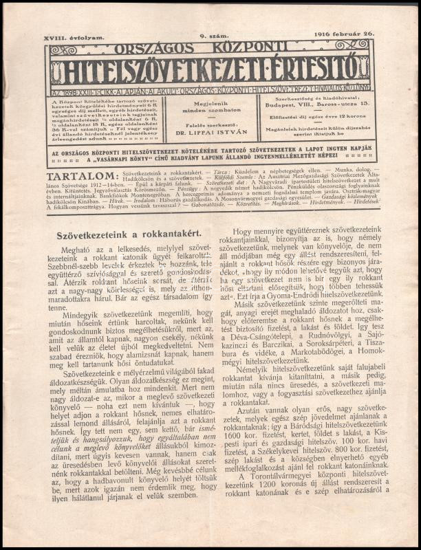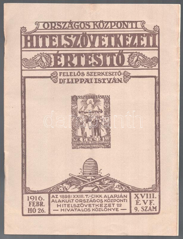 1916 Országos Hitelszövetkezeti értesítő XVIII. évf 9. szám. https://www.darabanth.com/hu/448-Gyorsarveres/448.0/Mutargy-papirregiseg-egyeb/Nyomtatvanyok~2000005/1916-Orszagos-Hitelszovetkezeti-ertesito-XVIII-evf-9-szam~II2966994