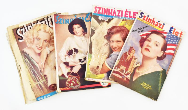 1932-1933 Színházi Élet 4 száma, az egyik széteső állapotban. https://www.darabanth.com/hu/448-Gyorsarveres/448.0/Mutargy-papirregiseg-egyeb/Nyomtatvanyok~2000005/1932-1933-Szinhazi-Elet-4-szama-az-egyik-szeteso-allapotban~II2973813