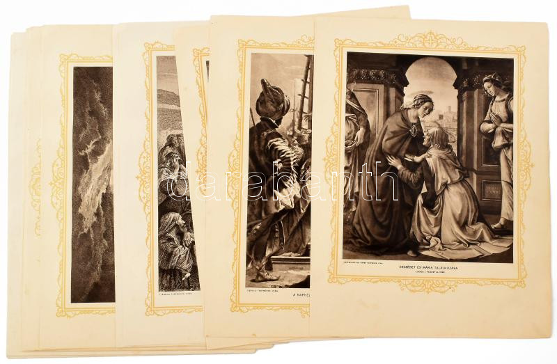 Leírás: cca 1910-1930 Bibliai, vallási témájú illusztrációk, 19 db festmények után készült nyomat, helyenként kissé foltos lapok, lapméret: 30x22,5 cm