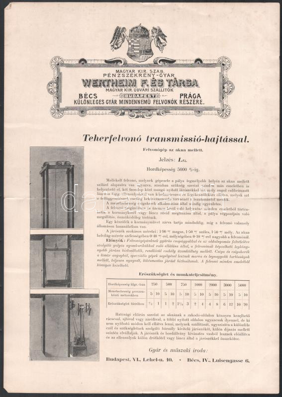 cca 1910 Bp. VI., Wertheim F. és Társa teherfelvonó udvari szállító le... https://www.darabanth.com/hu/448-Gyorsarveres/448.0/Mutargy-papirregiseg-egyeb/Nyomtatvanyok~2000005/cca-1910-Bp-VI-Wertheim-F-es-Tarsa-teherfelvono-udvari-szallito-leirasa-a-transmissio-h~II2974035