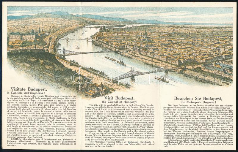 Leírás: cca 1920-1940 Budapest, ötnyelvű, képekkel illusztrált idegenforgalmi prospektus, 24x15,5 cm