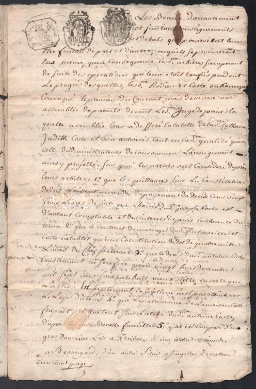 Leírás: 1751-1793 3 db francia nyelvű szignettás okmány. Laseille, Montpelliers, Minute. Több oldalas
