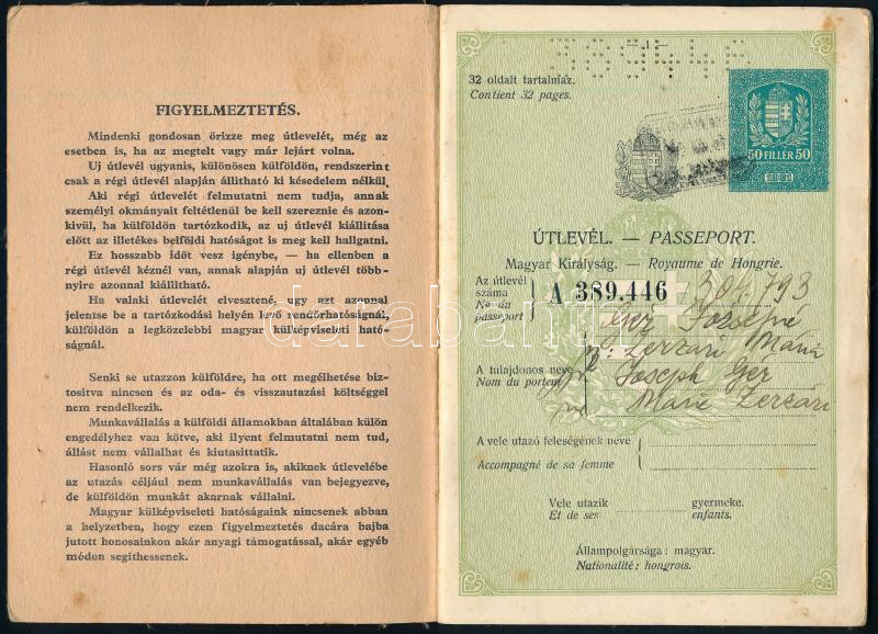 1933 Magyar Királyság által kiállított útlevél, fénykép nélkül, román ... https://www.darabanth.com/hu/448-Gyorsarveres/448.0/Mutargy-papirregiseg-egyeb/Okmanyok~1000031/1933-Magyar-Kiralysag-altal-kiallitott-utlevel-fenykep-nelkul-roman-vizummal~II2970314