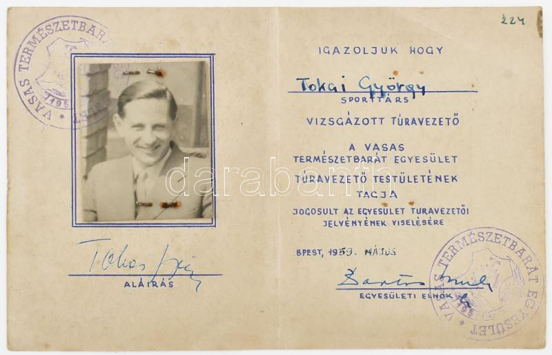 1959 Vasas Természetbarát Egyesület turavezető igazolvány, az egyesüle... https://www.darabanth.com/hu/448-Gyorsarveres/448.0/Mutargy-papirregiseg-egyeb/Okmanyok~1000031/1959-Vasas-Termeszetbarat-Egyesulet-turavezeto-igazolvany-az-egyesulet-turavazetoi-jelvenyC3~II2973439