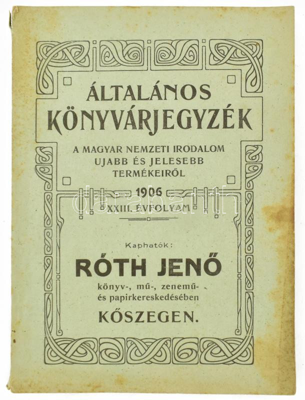1906 Kőszeg, Általános könyvárjegyzék Róth Jenő 224p. https://www.darabanth.com/hu/448-Gyorsarveres/448.0/Mutargy-papirregiseg-egyeb/Reklam~1000024/1906-Koszeg-Altalanos-konyvarjegyzekRoth-Jeno-224p~II2977441