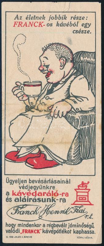 cca 1920 Franck Henrik Fiai Rt., Franck kávé számolócédula, hajtott https://www.darabanth.com/hu/448-Gyorsarveres/448.0/Mutargy-papirregiseg-egyeb/Reklam~1000024/cca-1920-Franck-Henrik-Fiai-Rt-Franck-kave-szamolocedula-hajtott~II2974115