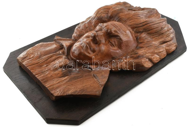 Csorvássy István (1912-1986): Beethoven a halottas ágyon. Faragott gyökér, fa lapon. A neves erdélyi szobrász életművének kiemelkedő darabja ez a nagyméretű gyökérfaragás. Jelzéssel, minimális kopással, tartólap korának megfelelő állapotban, 80x46 cm CSAK SZEMÉLYES ÁTVÉTEL, NEM POSTÁZZUK! / ONLY PERSONAL COLLECTION!