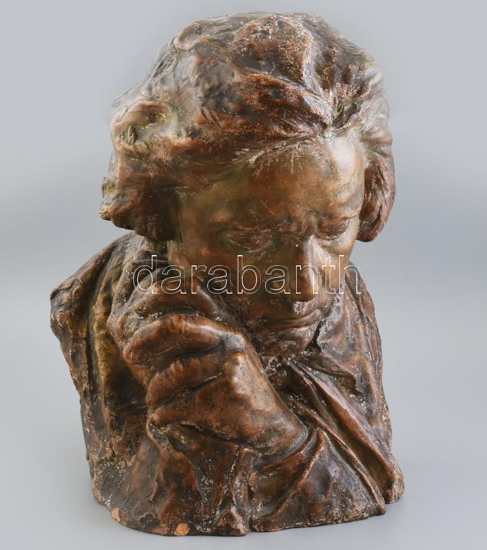 Leírás: Pierre Félix Masseau (1869-1937): Ludwig van Beethoven német zeneszerző büsztje. Terrakotta. Jelzett, kopott, m: 43 cm