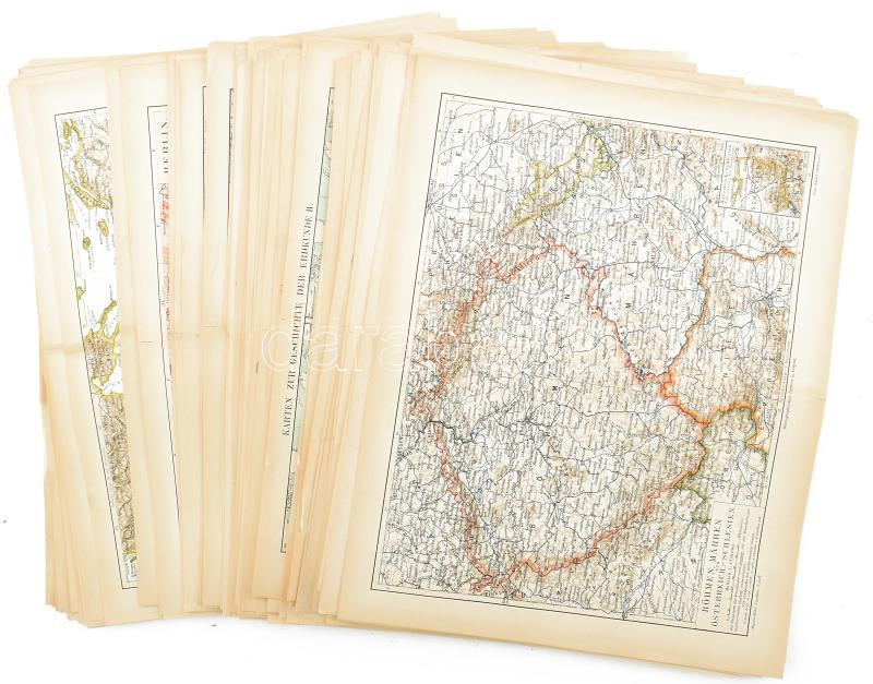 cca 1900 kb. 170 db kétoldalas térkép a Meyer's Lexikon 5. kiadásából, néhány magyar vonatkozású térképpel (Budapest, Magyarország Galíciával és Bukovinával) néhány kevés sérült, 24x30 cm