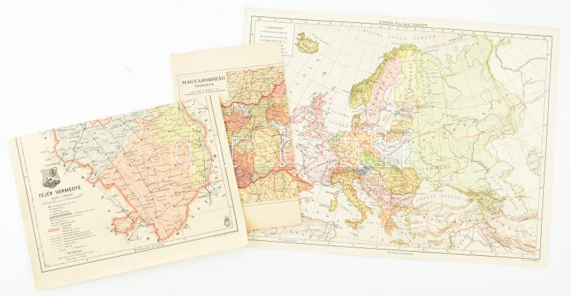 Leírás: cca 1930 3 db térkép: Fejér vármegye, Magyarország, Európa