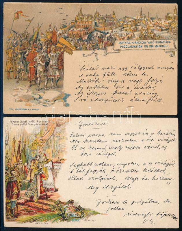 1898 A fiatal Voinovich Géza (1877-1952) irodalomtörténész autográf sorai a fiatal Marczali Erzsébet (1885-1937) későbbi költő, műfordító, Marczali Henrik lánya részére, 2 db képeslapon.