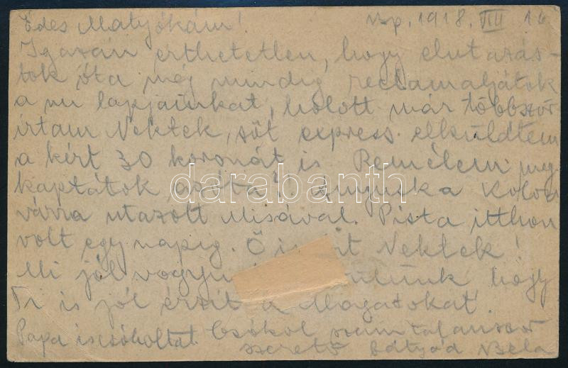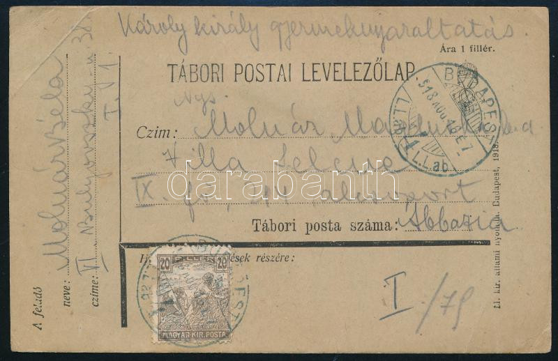 1918.VIII.16. Bp., Károly király gyermeknyaraltatás keretében elküldöt... https://www.darabanth.com/hu/448-Gyorsarveres/448.0/Mutargy-papirregiseg-egyeb/Tortenelmi-dokumentumok-keziratok-erdekessegek~1000032/1918VIII16-Bp-Karoly-kiraly-gyermeknyaraltatas-kereteben-elkuldott-tabori-posta-levelezC5~II2966605