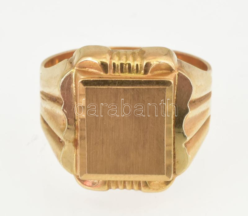 Leírás: 18K arany (Au) pecsétgyűrű jelzett, mesterjegyes, nem vésett m: 61, 11,8 g
