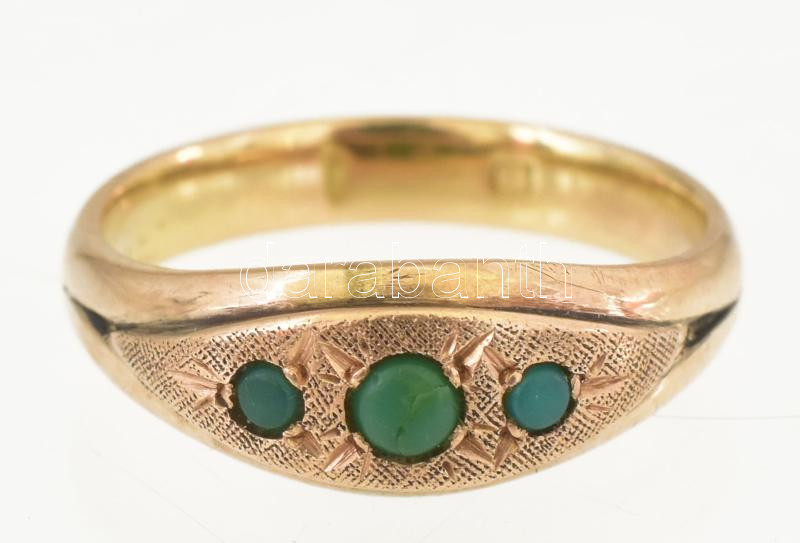 Arany (Au) 14 K gyűrű türkizzel, jelzett, méret: 52, bruttó: 3,32 g https://www.darabanth.com/hu/448-Gyorsarveres/448.0/Nemesfem-disztargyak-ekszerek-dragakovek/Nemesfem-disztargyak-ekszerek-dragakovek~2000025/Arany-Au-14-K-gyuru-turkizzel-jelzett-meret-52-brutto-3-32-g~II2974299
