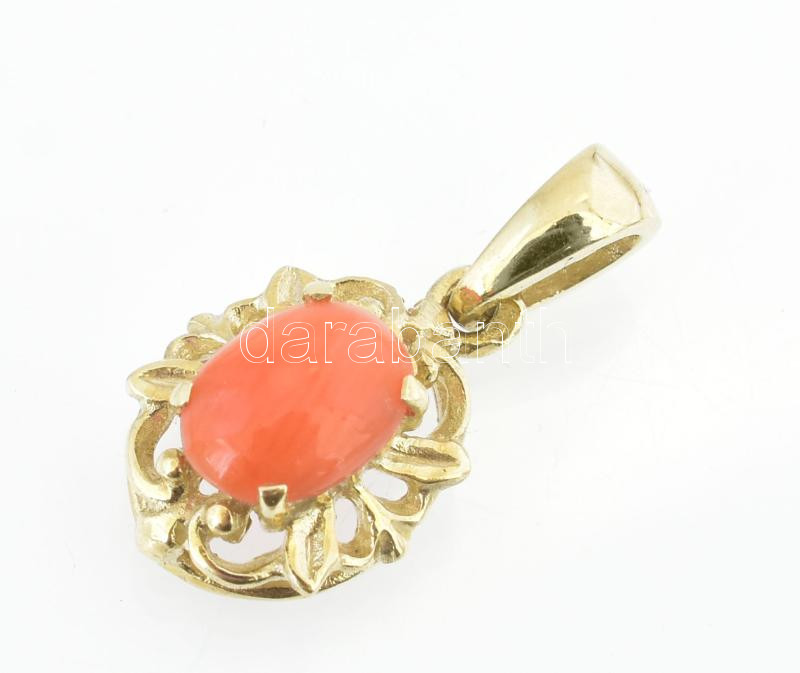 Leírás: Arany (Au) 14 K korallköves függő, jelzett, 2×1 cm, bruttó: 2,1 g