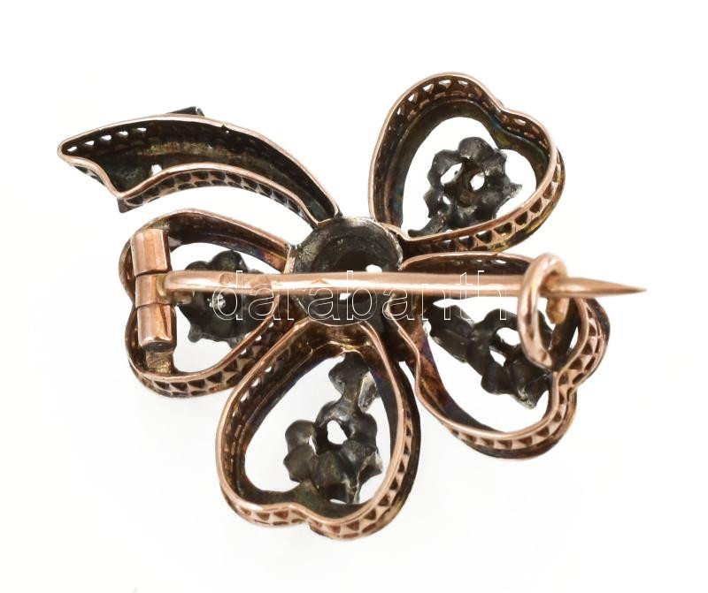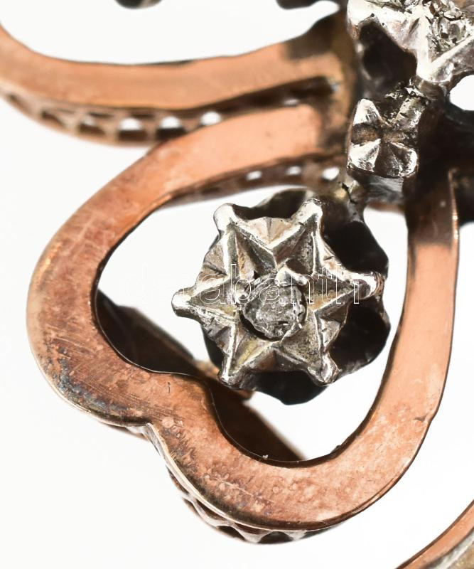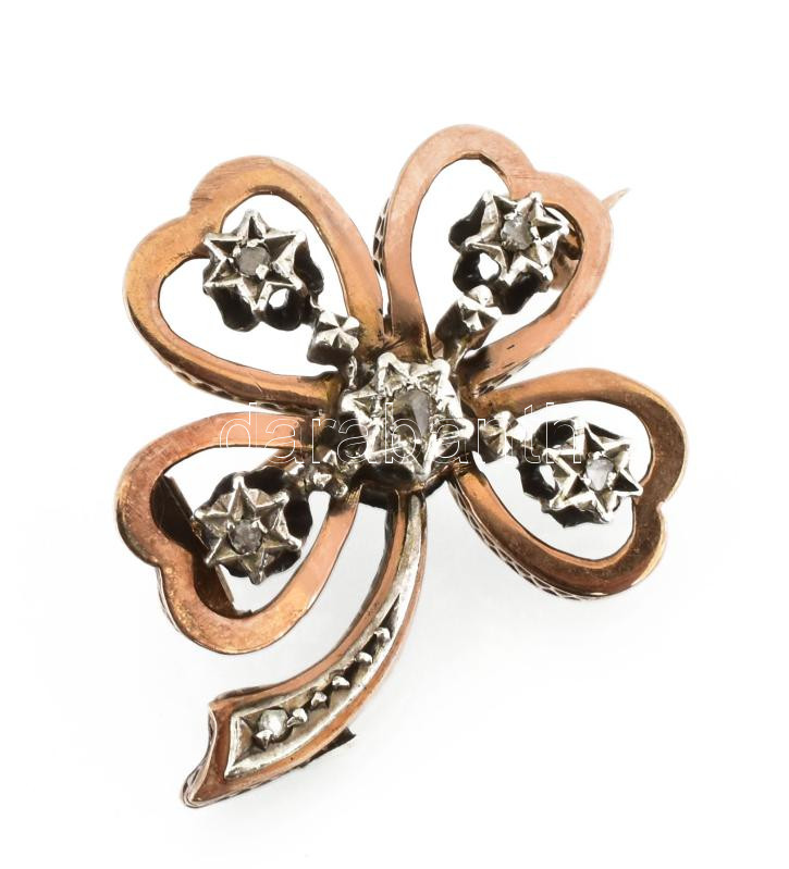 Leírás: Arany (Au) 14K bross gyémántokkal, jelzett, 2,5×2,5 cm, bruttó: 4,25 g