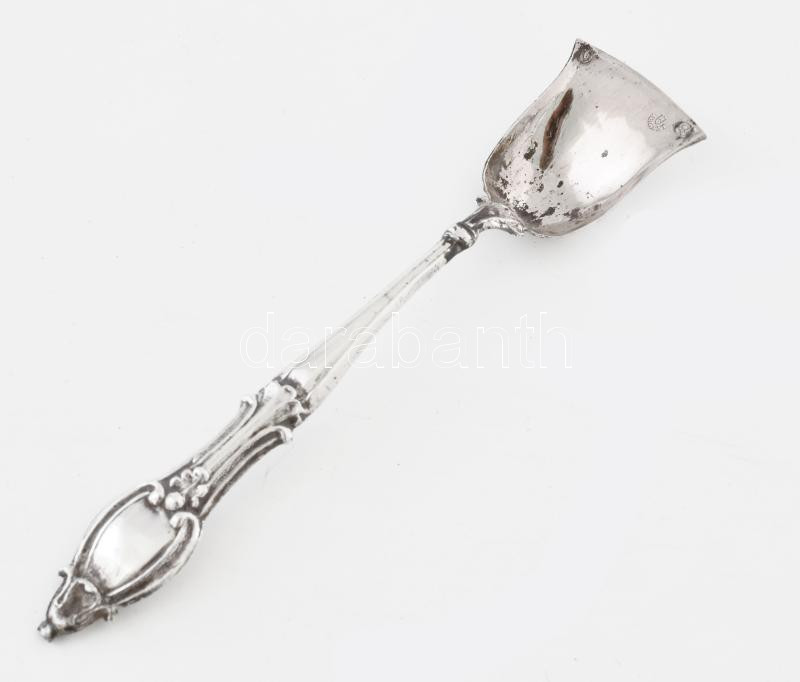 Leírás: Ezüst (Ag) kanál, jelzéssel, h: 8,5 cm, nettó: 8 g