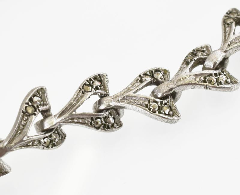 Leírás: Ezüst (Ag) karkötő, platinával lefújt markazit kövekkel. Jelzett, mesterjegyes 11,87 g