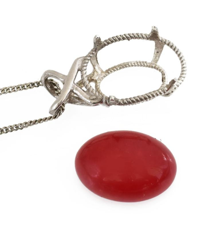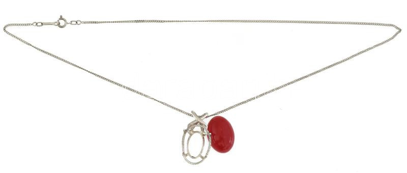 Leírás: Ezüst (Ag) nyaklánc piros kővel (kő kiesett), jelzéssel, bruttó: 5,7 g