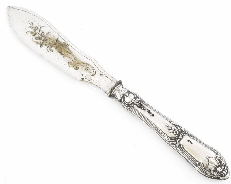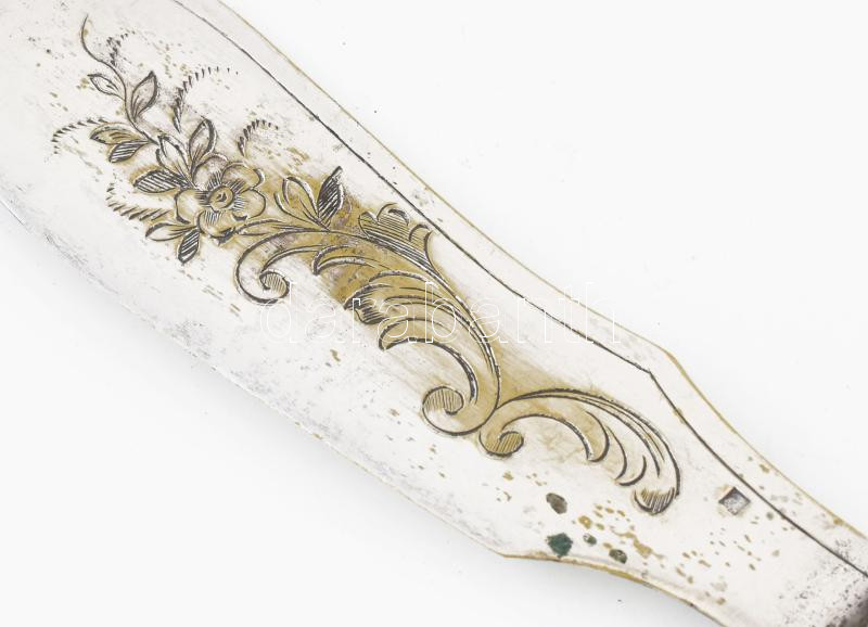 Leírás: Ezüst (Ag) nyelű kés, jelzéssel, h: 20,5 cm, bruttó: 44 g
