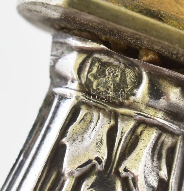 Ezüst (Ag) nyelű pralinés kanál, jelzéssel, h: 17,5 cm, bruttó: 38 g https://www.darabanth.com/hu/448-Gyorsarveres/448.0/Nemesfem-disztargyak-ekszerek-dragakovek/Nemesfem-disztargyak-ekszerek-dragakovek~2000025/Ezust-Ag-nyelu-pralines-kanal-jelzessel-h-17-5-cm-brutto-38-g~II2972116