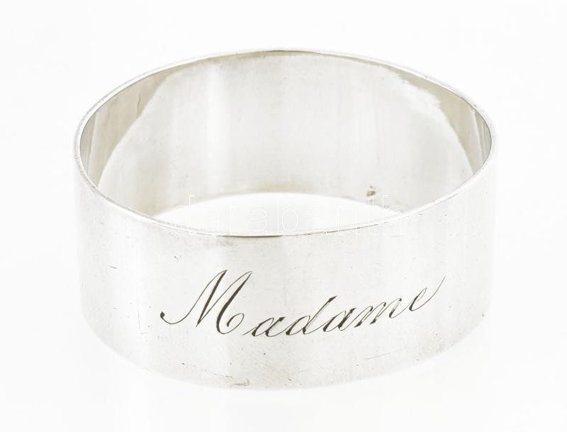 Leírás: Ezüst (Ag) szalvétagyűrű, Madame felirattal, jelzett, d: 5 cm, 27,5 g