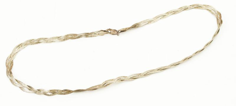 Ezüst(Ag) fonott nyaklánc, jelzett, h: 42 cm, nettó: 10,8 g https://www.darabanth.com/hu/448-Gyorsarveres/448.0/Nemesfem-disztargyak-ekszerek-dragakovek/Nemesfem-disztargyak-ekszerek-dragakovek~2000025/EzustAg-fonott-nyaklanc-jelzett-h-42-cm-netto-10-8-g~II2974263