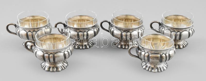 Leírás: Ezüst(Ag) pohárkészlet, üvegbetéttel, 6 db, jelzett, d: 6 cm, nettó: 272,8 g