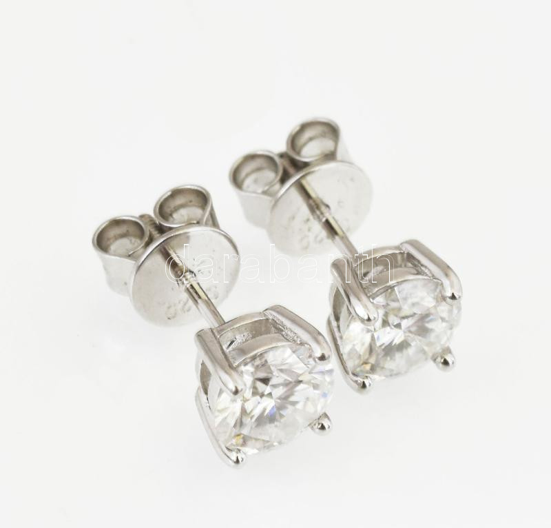 Leírás: Moissanite köves ezüst (Ag) fülbevalópár, (kő átmérője: 6 mm, briliáns csiszolás, cca. 1,8 cts), össz. 1,8 g