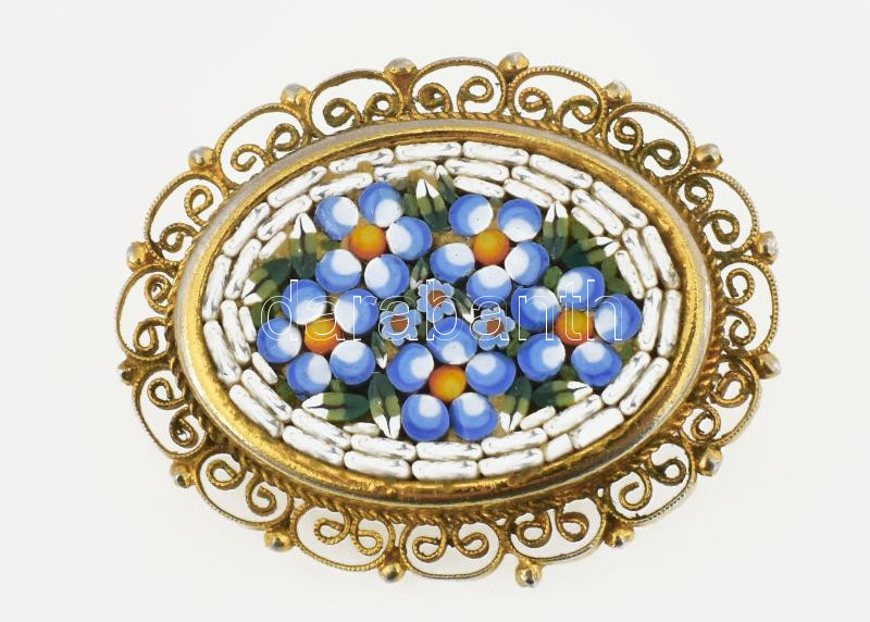 Murano üvegmozaik betétes bross, jelzéssel, 4,5x3,5 cm https://www.darabanth.com/hu/448-Gyorsarveres/448.0/Nemesfem-disztargyak-ekszerek-dragakovek/Nemesfem-disztargyak-ekszerek-dragakovek~2000025/Murano-uvegmozaik-betetes-bross-jelzessel-4-5x3-5-cm~II2966133