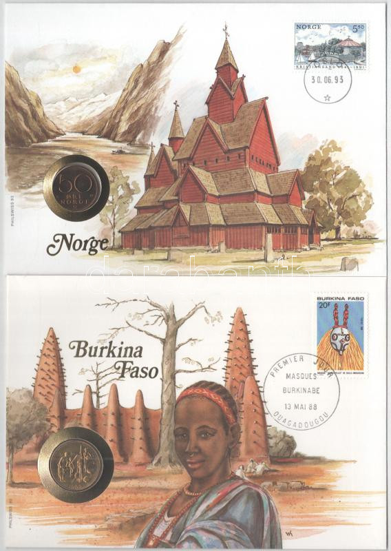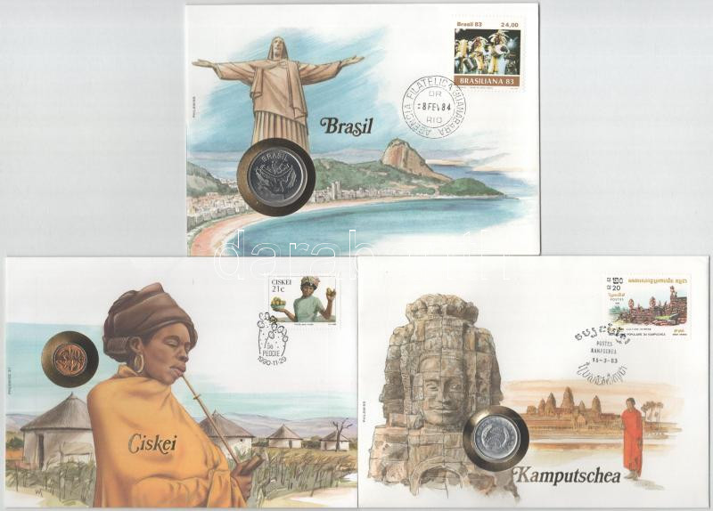 Leírás: 5db-os érmés boríték tétel, mind különféle és német nyelvű tájékoztatóval, benne: Brazília, Ciskei, Kambodzsa, Norvégia, Burkina Faso