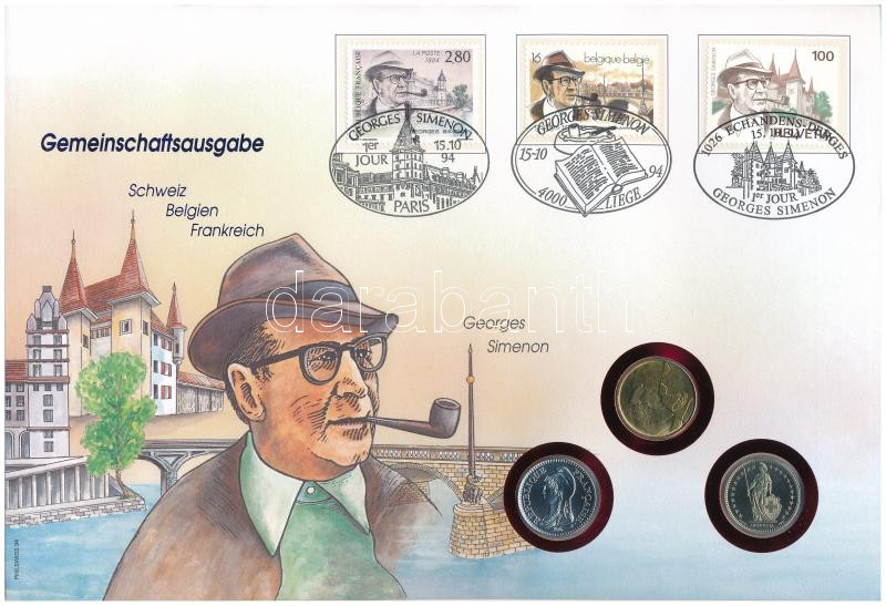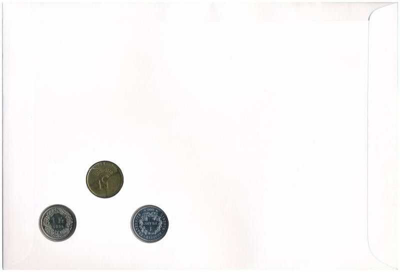 Leírás: "Gemeinschaftausgabe (Közös kiadás)" Belgium 1993. 5Fr + Franciaország 1992. 1Fr Cu-Ni + Svájc 1994. 1Fr Cu-Ni érmés borítékban T:UNC