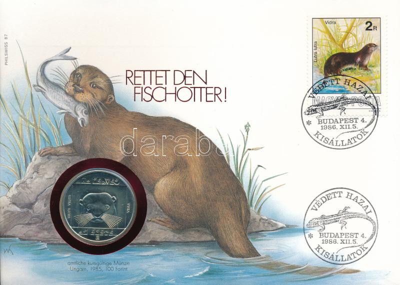 Magyarország 1985. 100Ft alpakka "Természetvédelem - Vidra" felbélyegzett, alkalmi bélyegzéssel, német nyelvű leírással T:BU Hungary 1985. 100Ft "Environmental Protection - Otter" in envelope with stamp, with German description C:BU