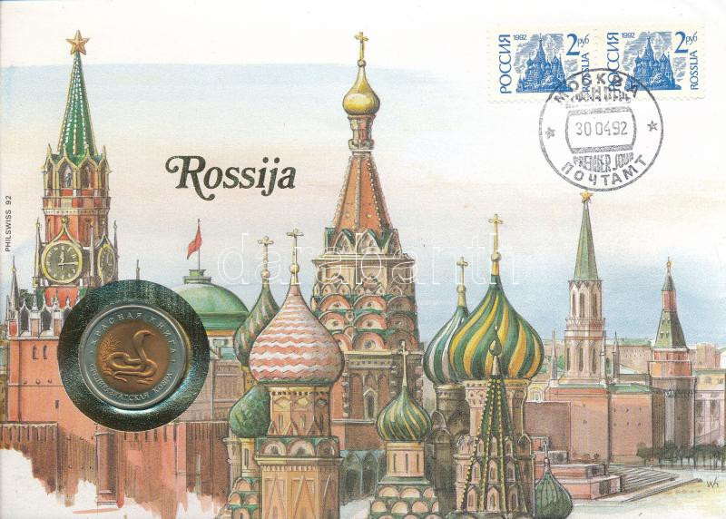 Oroszország 1992. 10R "Vörös Könyv - Közép-ázsiai kobra" felbélyegzett borítékban, bélyegzéssel T:UNC Russia 1992. 10 Rubles "Red Book - Central Asian Cobra" in envelope with stamp and cancellation C:UNC