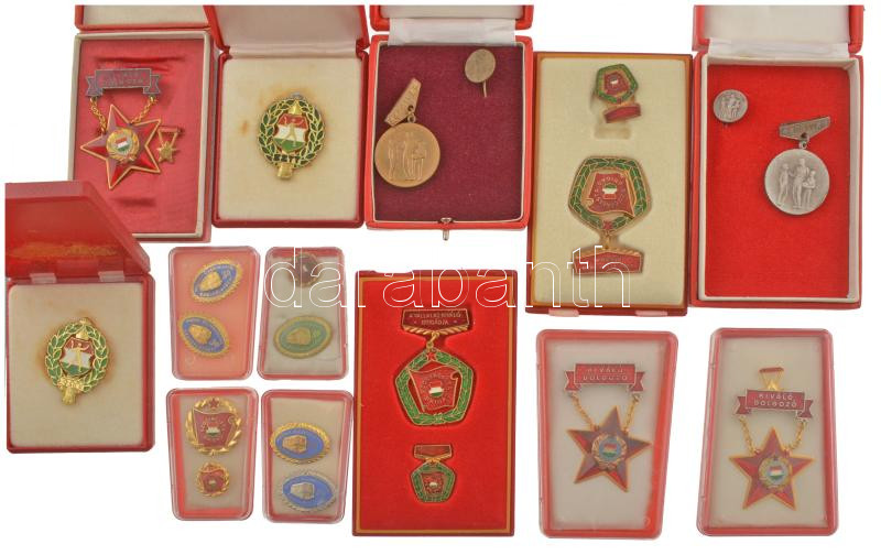 Leírás: 15db vegyes, főleg magyar szocialista kitüntetés, jelvény tokban, közte 2db csehszlovák kitüntetéssel, "Magyar Államvasutak 20, 30 éves szolgálatáért" aranyozott, ezüstözött, zománcozott és műgyantás jelvények (5x) T:AU,XF