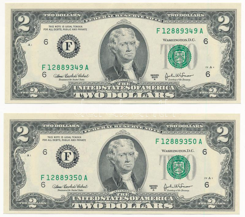 Amerikai Egyesült Államok 2003. (2003A) 1$ "Anna Escobedo Cabral - John W. Snow" (2x) sorszámköetők T:VF USA 2003. (2003A) 1 Dollar "Anna Escobedo Cabral - John W. Snow" (2x) sequnetial serials C:VF