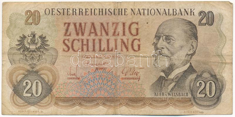 Ausztria 1956. 20Sch T:F apró ly. Austria 1956. 20 Shilling C:F tiny h... https://www.darabanth.com/hu/448-Gyorsarveres/448.0/Numizmatika/Kulfoldi-bankjegyek~500013/Ausztria-1956-20Sch-TF-apro-ly-Austria-1956-20-Shilling-CF-tiny-hole-Krause-136~II2975092