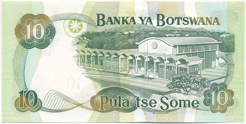 Krause 24.a https://www.darabanth.com/hu/448-Gyorsarveres/448.0/Numizmatika/Kulfoldi-bankjegyek~500013/Botswana-2002-10P-TUNC-Botswana-2002-10-Pula-CUNC--Krause-24a~II2974912