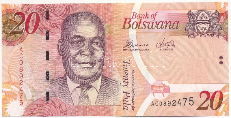Botswana 2012. 20 Pula C:UNC https://www.darabanth.com/hu/448-Gyorsarveres/448.0/Numizmatika/Kulfoldi-bankjegyek~500013/Botswana-2012-20P-TUNC-Botswana-2012-20-Pula-CUNC~II2974899