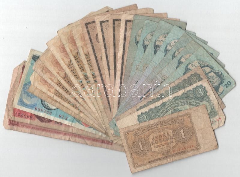 Czechoslovakia 1953. 1 Koruna + 1960. 10 Korún (5x) + 1961. 3 Koruny (2x) + 1964. 50 Korún + 1970. 20 Korun (8x) + 1986. 10 Korún (7x) + 1987. 50 Korún + 1988. 20 Korun T:F,VG