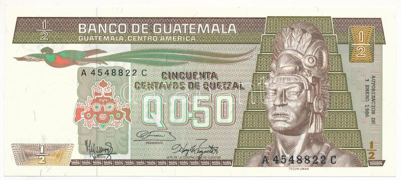Guatemala 1986. 1/2 Quetzal C:UNC