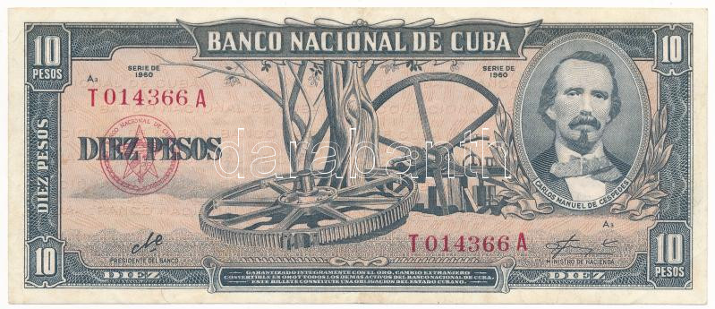 Kuba 1960. 10P a hátoldalra átüt az előoldal nyomata T:F szép papír