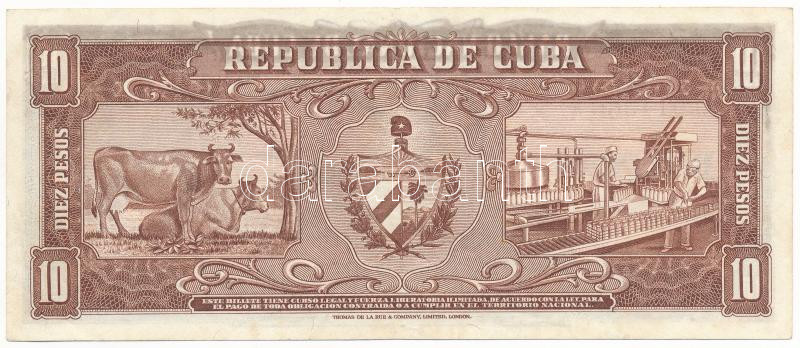 Cuba 1960. 10 Pesos the print of the front shows through on the back C:F fine paper