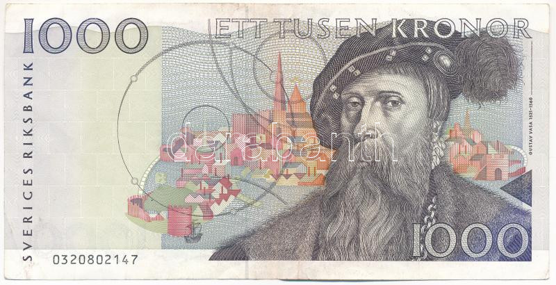 Svédország 1990-1991. 1000Kr "0320802147" T:F kis beszakadások, de erős papír Sweden 1990-1991. 1000 Kronor "0320802147" C:F small tears, but strong paper