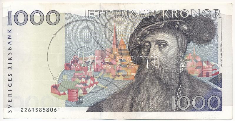 Svédország 1992. 1000Kr "2261585806" T:F kis beszakadások, de erős papír Sweden 1992. 1000 Kronor "2261585806" C:F small tears, but strong paper