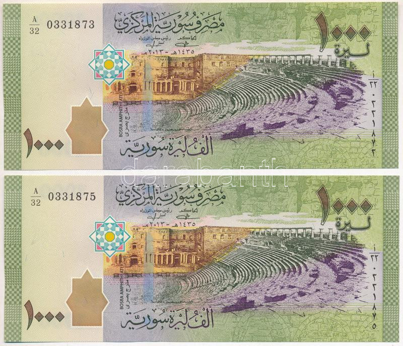 Leírás: Szíria 2013. 1000P (2db) egyugrásos sorszámkövetők T:UNC Syria 2013. 1000 Pounds (2pcs) one leap consecutive serials C:UNC