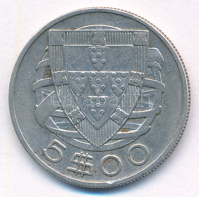 Portugal 1933. 5 Escudos Ag C:VF https://www.darabanth.com/hu/448-Gyorsarveres/448.0/Numizmatika/Kulfoldi-fem-es-ezustpenzek~500014/Portugalia-1933-5E-Ag-TVF--Portugal-1933-5-Escudos-Ag-CVF~II2949460