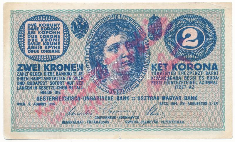 Leírás: 1914. 2K "A" sorszámjel T:VF kis szakadás, firka, kopott sarkok
