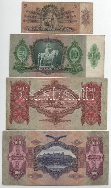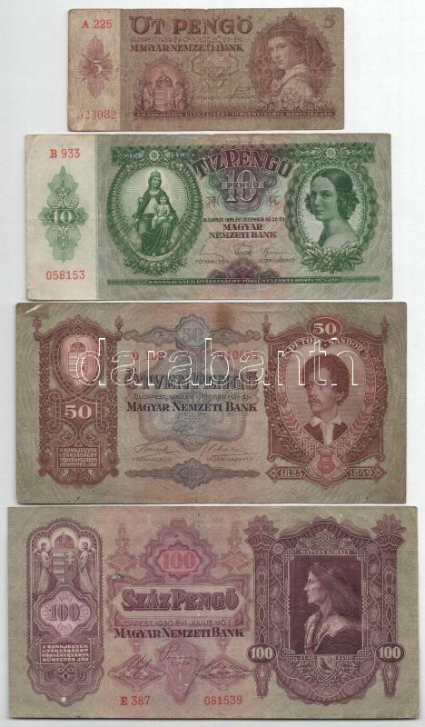 1930. 100P + 1932. 50P + 1936. 10P + 1939. 5P T:F https://www.darabanth.com/hu/448-Gyorsarveres/448.0/Numizmatika/Magyar-bankjegyek~500007/1930-100P-plus-1932-50P-plus-1936-10P-plus-1939-5P-TF~II2902338